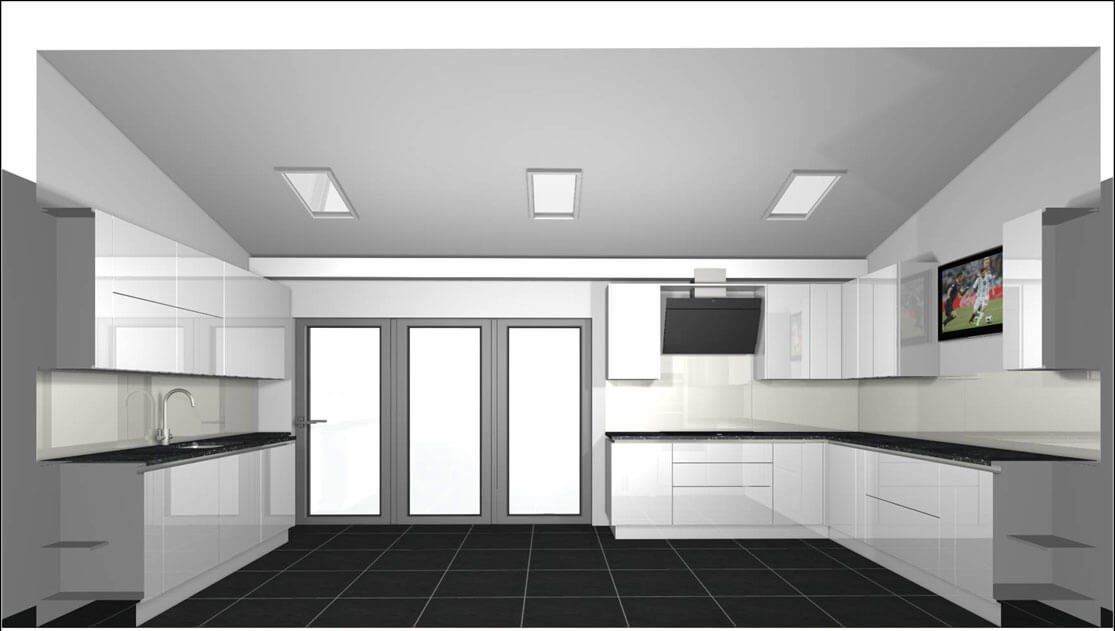 This beautiful Wickes Intelliga ice white cad design is now installed at Chiltern Avenue, Watford. Please scroll through my completed designs portfolios to see how gorgeous the real kitchen looks like.